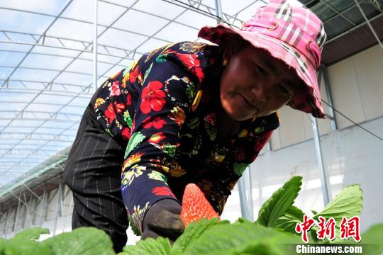 Le 15 mars dernier, Zong Ji, 37 ans, cueille des fraises dans une serre. Les fruits et légumes du district sont principalement des variétés biologiques et leur prix est donc relativement élevé. Par exemple, le prix actuel des fraises de Bainang est de 100 yuans au kilo (environ 13 euros le kilo).