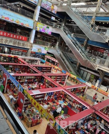 Des produits tibétains originaux présentés dans la vitrine de la salle de réduction de la pauvreté du marché de gros de produits agricoles de Xinfadi.