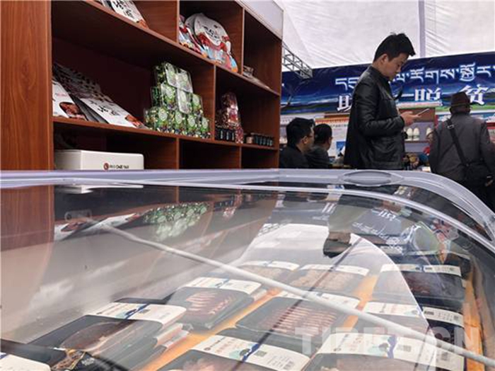 La zone dédiée à l'industrie du yak dans l'Exposition des résultats de la lutte contre la pauvreté par le développement industriel au Tibet, tenue à Lhassa.