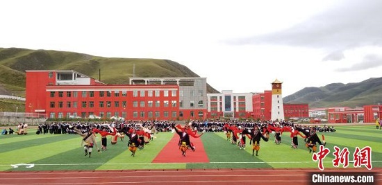 En photo : Le Quatrième Lycée ethnique modernisé de la Préfecture autonome tibétaine de Yushu, soutenu par Beijing.