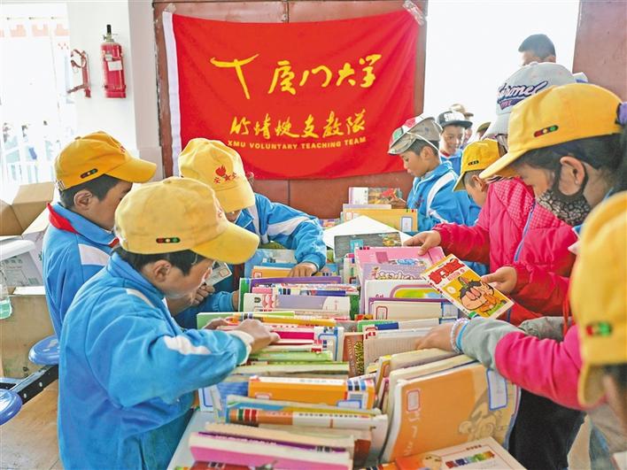 En 2002, l'Université de Xiamen a été désignée à apporter aide à l'Université des Ethnies du Tibet dans le cadre d'un programme lancé par le Ministère de l'Education de la Chine. Elle était parmi le premier lot d'instituts d'enseignement supérieur en aide au Tibet. Depuis 2003, l'Université de Xiamen a accueilli et formé 20 étudiants en doctorat et plus de 200 étudiants en échange venus de l'Université des Ethnies du Tibet, tout celà dans l'objectif d'améliorer la qualité pédagoqique de cette dernière. A cette fin, une plate-forme numérique de partage de ressources bibliothécaire a également été mise en ligne entre les deux universités.