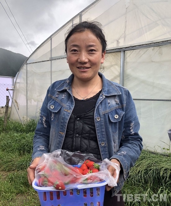 Des fraises fra?chement cueillies par les villageois du village de Jiuba dans des serres.