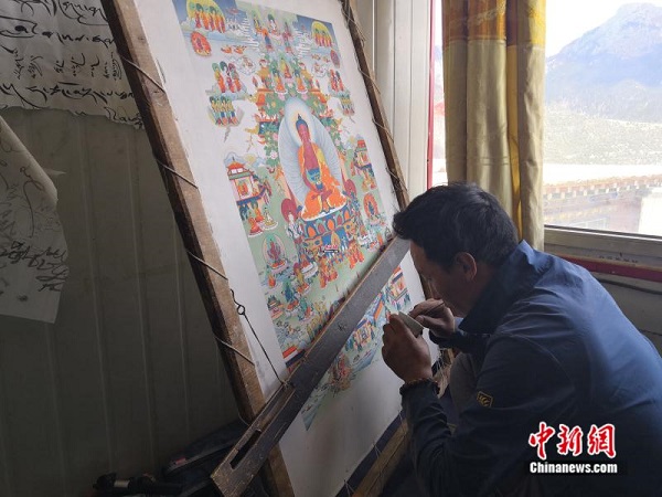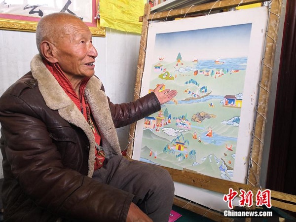 Le vieil homme Karma Delek, agé de 88 ans, est l'héritier de la dixième génération de l'école Karma Karchi de la peinture de thankga. La région autonome du Tibet lui a octroyé les titres ? Ma?tre de l'art de thankga ? et ? Héritier régional du patrimoine culturel immatériel ?.