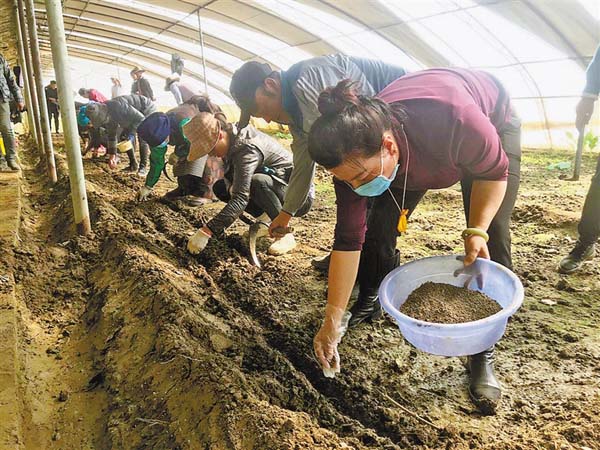 En photo : une opération de démonstration de plantation d'épinards en serre dans le canton de Daga, comté de Qushui.