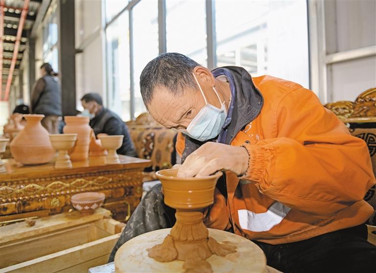 En photo : des villageois, du village de Tagba de la ville de Konggar du comté de Maizhokunggar, sont en train de fabriquer de la poterie.