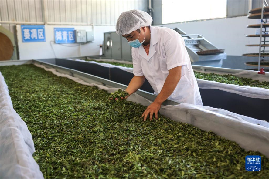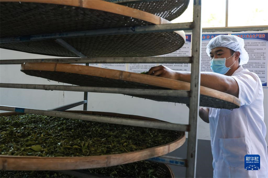 Un ouvrier traite du thé dans un atelier au xian de Shiqian, dans la province du Guizhou (sud-ouest), le 9 ao?t 2022. (Photo : Ou Dongqu/Xinhua)