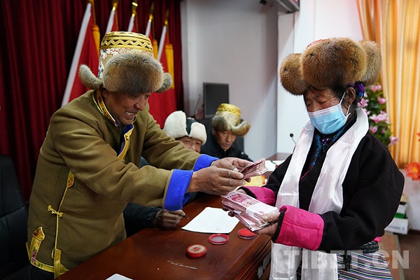 ? 44 565 yuans pour Phurbu Dasang, 38 750 yuans pour Dorje Tashi et 2 000 yuans pour Jamyang Drolma... ? Les villageois et les bergers appelés se sont présentés les uns après les autres pour recevoir leur premier dividende après être devenu actionnaire. Ce jour-là, la ferme d'élevage a distribué un total de 646 500 yuans en salaires et dividendes à 12 employés de paturage et 102 villageois qui ont acheté des actions.