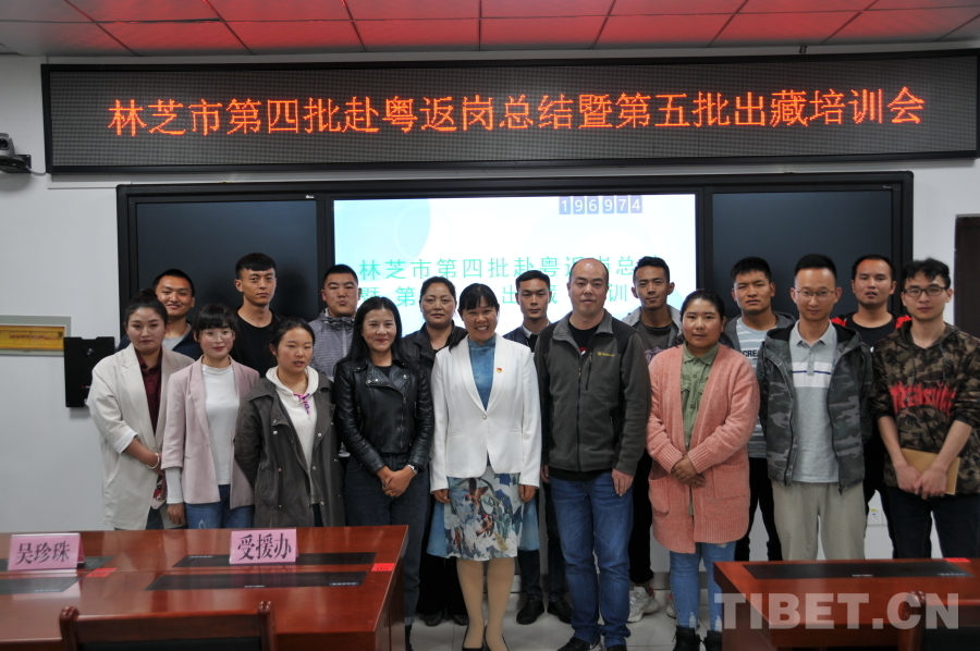 En photo : Wu Zhenzhu aux c?tés de la quatrième équipe d'enseignants revenant de la province du Guangdong à Nyingchi, ainsi que de la cinquième équipe d'enseignants de Nyingchi partant en formation dans le Guangdong. Photo prise en 2020.