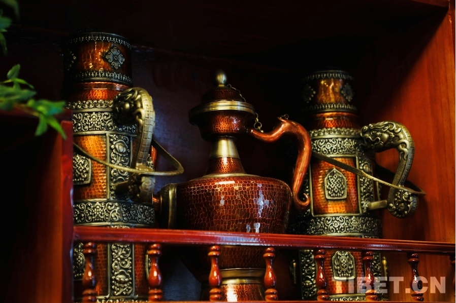 Des objets tibétains traditionnels aux caractéristiques ethniques marquées.