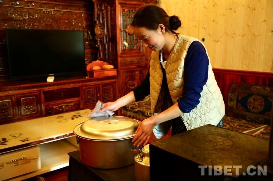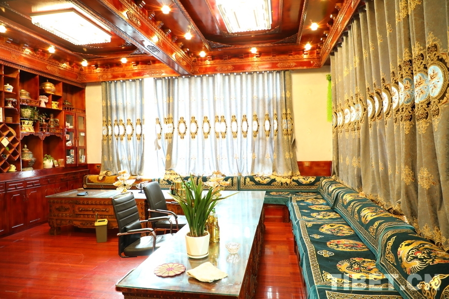 Aujourd'hui, le village de Dadog prospère grace à des industries collectives telles qu'une usine de gravier, une usine de traitement de pierre, une usine de transformation du tsampa, un batiment industriel et des équipes de construction formées par les agriculteurs et les éleveurs. Tous les habitants vivent dans des maisons spacieuses et jouissent de l'abondance. Le villageois Pujiang a déclaré : ? Rien que notre usine de transformation de tsampa génère chaque année entre 500 000 et 600 000 yuans, et chaque famille re?oit un dividende de plus de 1 000 yuans. ? Sur place, on a pu observer que les machines électriques utilisées pour transformer le tsampa étaient à la fois économes en énergie et en temps. Le secrétaire du Parti et directeur du comité villageois de Dadog, Tuding Nyima, a déclaré : ? En 2023, les revenus économiques collectifs du village de Daldog s'élevaient à plus d'un million de yuans. ? Sur la photo, on peut voir une route propre et bien entretenue dans le village de Dadog, avec des maisons résidentielles uniformes de part et d'autre.