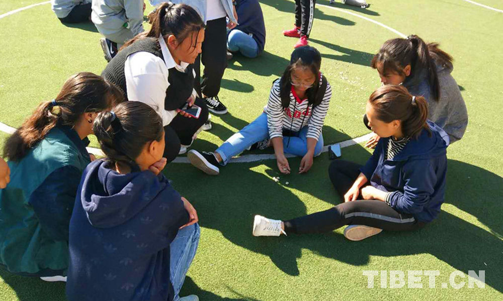 Le jeu de Sho (qui se joue avec des dés) est un jeu traditionnel au Tibet. Ici, des lycéens jouent au jeu de Sho.