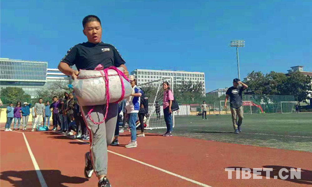 Dans la tradition tibétaine, le porté de poids et de pierres est un sport quotidien destiné à mesurer la force des athlètes. Or, nos lycéens de Pékin ont opté pour le porté de sacs de sable, et ont ainsi transformé ce sport ancien en une compétition très amusante.