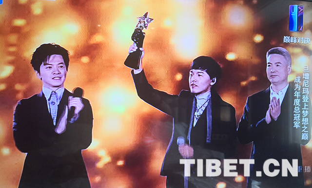 Lors de la première manche de la finale, Tenzin Nyima a coopéré avec son tuteur Li Jian pour chanter Shui Liu Zhong Sheng, une interprétation qui a littéralement charmé les spectateurs. Pour la deuxième manche, le jeune tibétain a interprété Nian Qin En (Merci aux familles qui m’ont élevé), faisant preuve de sa virtuosité. Pour la dernière manche, il a fusionné trois chansons afin d’interpréter l’histoire mythique d’un enfant de l’Himalaya, ce qui a poussé les spectateurs à chanter avec lui. Le spectacle a atteint son apogée lors du refrain qui lui a valu une vague d’applaudissements.