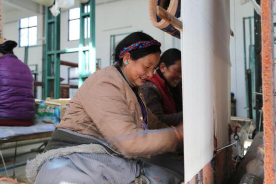 ? Le gouvernement du comté de Gyantse a investi 6,5 millions de yuans et nous a aidés à construire un nouvel atelier, avec une structure en acier, qui couvre une superficie de plus de 15 000 mètres carrés ?, a dit La Ping, directeur de l'usine de tapis de Gyantse. ? Nous avons maintenant 60 travailleurs dans notre usine. Le revenu mensuel par habitant peut atteindre plus de 3200 yuans. Notre usine adopte un système de plus de travail et plus les bonus, le revenu mensuel peut atteindre plus de 4 700 yuans, et cela augmentera non seulement la motivation des employés, mais améliorera la productivité de notre usine. ?