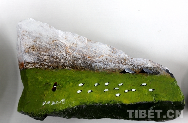 ? Ma ville natale est magnifique, et aujourd'hui, j'ai peint ma ville natale sur une pierre ?, a dit avec beaucoup d'intérêt Phuntsok Tseten qui peint sur une pierre pour la première fois de sa vie. ? à l'avenir, je vais recueillir plus de pierres et les utiliser pour peindre. ?