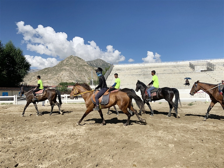 Le spectacle équestre traditionnel ethnique du Festival Shoton de Lhassa de 2020, coparrainé par le gouvernement populaire municipal de Lhassa et le Bureau des sports de la région autonome du Tibet, aura lieu à l'hippodrome de Beijiao, le 20 ao?t. Le matin du 17 ao?t, le journaliste est venu sur place pour ? explorer ? les lieux, alors que les athlètes et les chevaux participant à la traditionnelle performance équestre nationale du Festival Shoton se préparaient à l'entra?nement.
