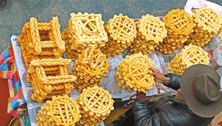 En photo : des ? Lala ?, un produit à base du lait, vendus sur le marché des produits du Nouvel An de Lhassa.