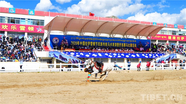 Une représentation équestre traditionnelle lors du Festival Shoton de Lhassa en 2020.