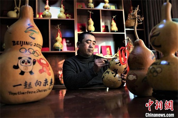 • Hebei : un agriculteur paraplégique célèbre les Jeux olympiques d'hiver de Beijing 2022 avec une gourde pyrogravée à la main