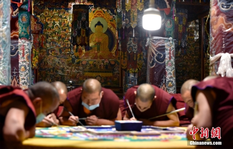 Le 9 mars, le monastère de Kundeling, un monastère bouddhiste tibétain situé à Lhassa, dans la région autonome du Tibet, a réalisé un mandala en sable. Selon la tradition du monastère de Kundeling, lors du Nouvel An tibétain, le monastère crée et vénère l'un des trois mandalas. L'origine de mandala se trouve dans le Tantra du bouddhisme indien et est l'un des objets consacrés dans le Tantra du bouddhisme tibétain.