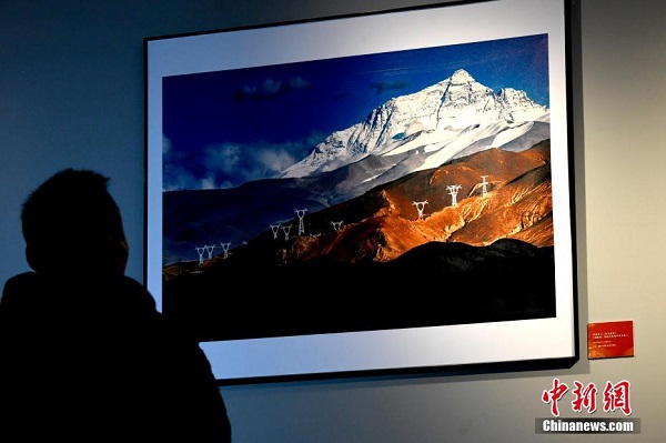 En photo : L'?uvre photographique ? Namjagbarwa doré ? présentée dans l'exposition.