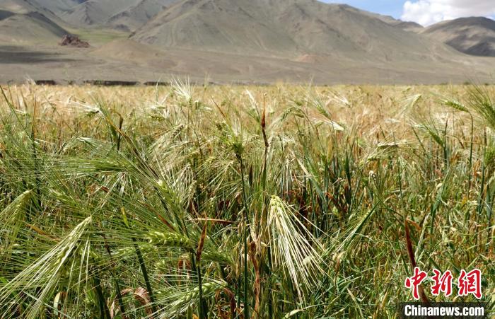 En photo : champ d'orge dans le premier groupe du village de Bugong, situé dans le bourg de Gegye, comté de Gegye, préfecture de Ngari, région autonome du Tibet.