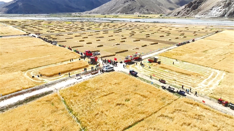Récemment, des moissonneuses-batteuses faisaient la navette et rugissaient sur une parcelle de démonstration de 1 000 mus d'orge de haute altitude écologique, de haute qualité et efficace à Niecang, canton de Katse, district de Namling, ville de Shigatsé, réalisant des opérations mécaniques multi-liens de labour, plantation, gestion et récolte, favorisant efficacement le développement de haute qualité de l'industrie de l'orge des hautes terres.
