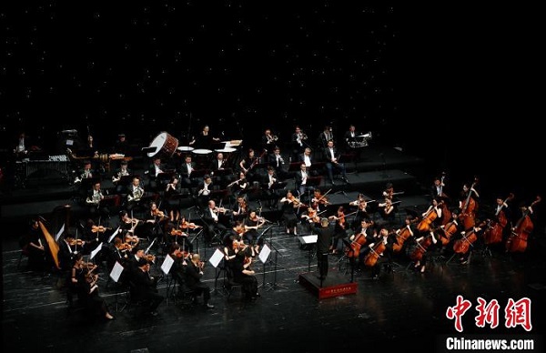 En photo : Le concert symphonique ? Sheng Yue Hua Zhang ? de célèbre musique chinoise et étrangère présenté par l'Orchestre d'opéra et de danse dramatique de Chine au Grand Théatre du Qinghai.
