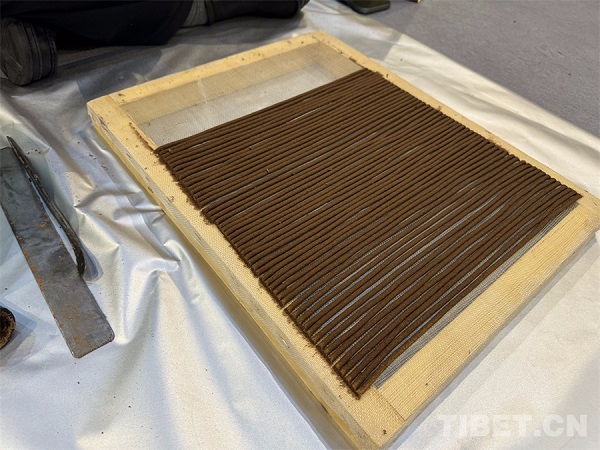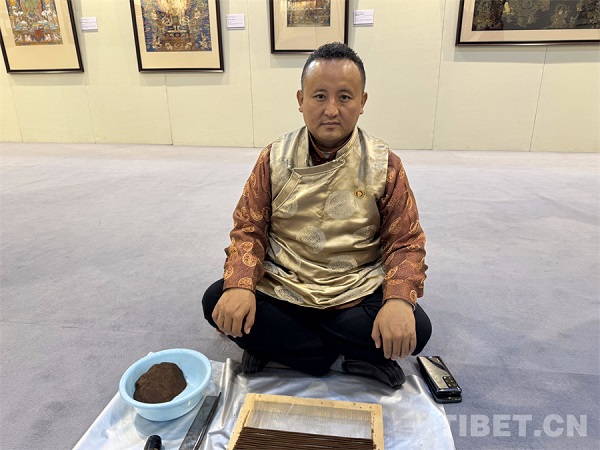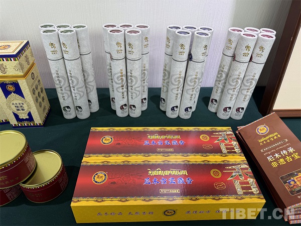 Installé simplement dans un coin de l'espace, Tenzin Chodrak était plongé dans la fabrication artisanale de l'encens tibétain, réalisant avec lenteur et sérénité le processus de ? modelage de l'encens ?. ? L'encens tibétain est l'un des produits les plus vendus parmi les artisanats traditionnels du Xizang. Depuis Thonmi Sambhota, la technique de fabrication de l'encens tibétain de Nyemo a plus de 1300 ans d'histoire et elle est étroitement liée à notre vie quotidienne ?, a expliqué Tenzin Chodrak.