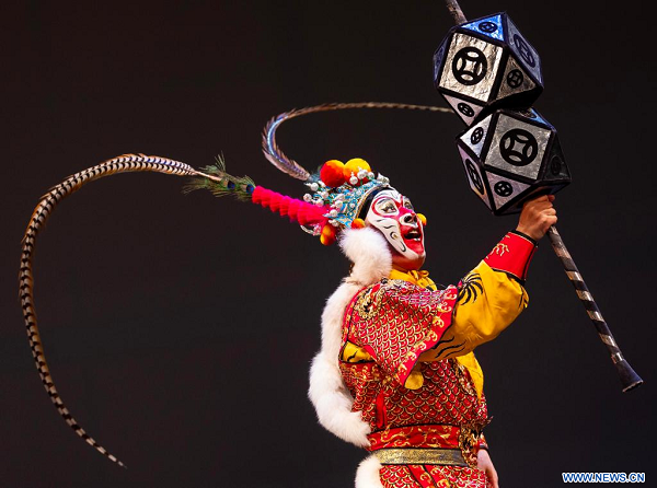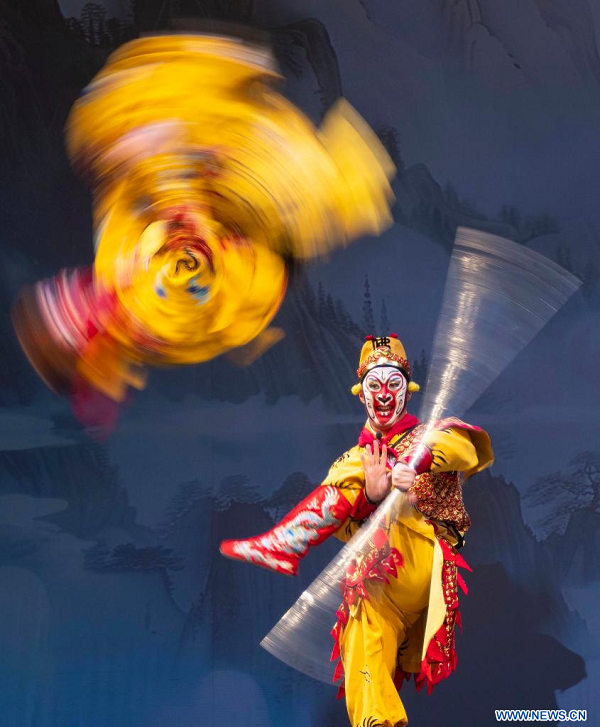 Un artiste du Centre de recherche sur l'opéra Wu de la province chinoise du Zhejiang se produisent lors d'un gala d'opéra pour accueillir le Nouvel An chinois à Toronto, au Canada, le 5 janvier 2025.