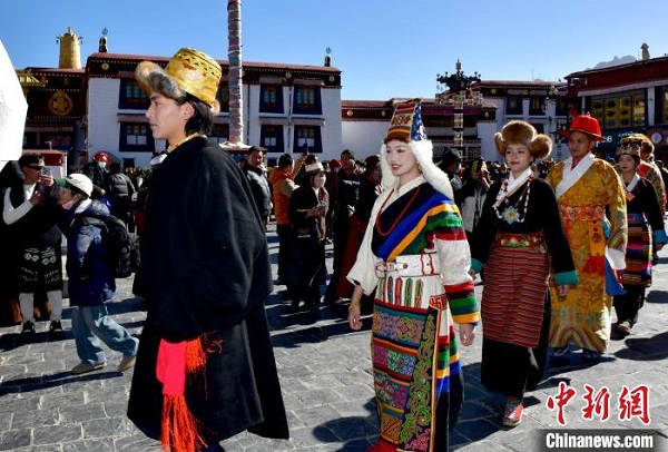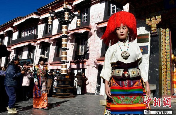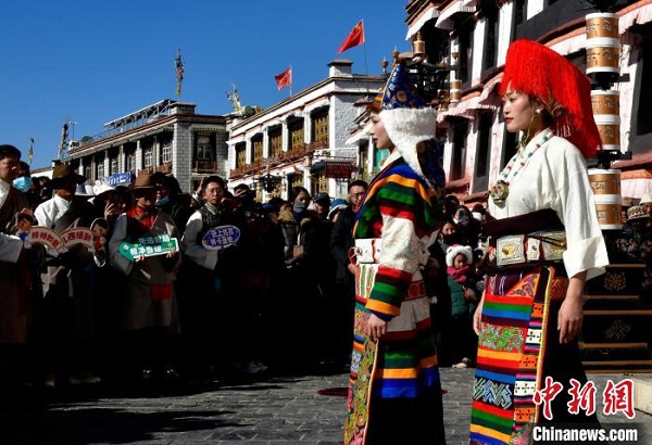 Un défilé de vêtements traditionnels de Lhassa s'est tenu dans la rue Barkhor, à Lhassa, dans la région autonome du Xizang. Cet événement a mis en valeur la beauté des costumes traditionnels de Lhassa ainsi que ceux des zones agricoles, ajoutant une touche culturelle et charmante aux visites hivernales dans la région.