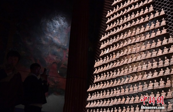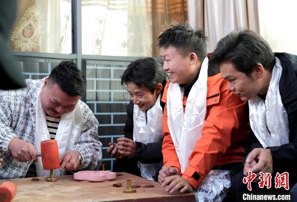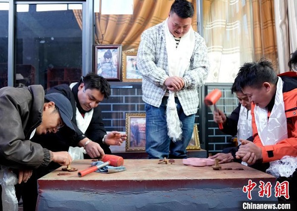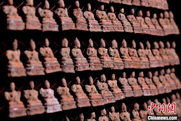 Le mot ? tsha tsha ? est la translittération tibétaine du sanskrit, qui signifie ? réplique ?. Il s'agit d'une petite statue de Bouddha faite avec un matériau tel que l'argile molle qui est comprimé dans un moule dédié, puis pressé pour obtenir sa forme finale, ce qui est un art unique du moulage de sculptures en argile au Xizang. Les photos du 2 mars montrent une salle d'exposition de la culture tibétaine de tsha tsha dans la banlieue nord de Lhassa, au Xizang, où des visiteurs présentent les tsha tsha qu'ils ont faits.