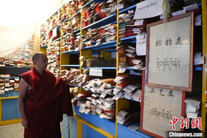 ? à l'avenir, si quelqu'un souhaite consulter un sutra bouddhiste, il ne sera plus nécessaire de le chercher en les dépla?ant un par un, ou même de monter sur une échelle pour le consulter comme c'est le cas aujourd'hui. Il suffira d'ouvrir le catalogue numérique des anciens manuscrits, et il y a de fortes chances que le texte apparaisse immédiatement, rendant la consultation très pratique. ? En entrant dans le pavillon des sutras, on constate que les étagères du premier niveau sont soigneusement alignées avec des anciens manuscrits déjà classés et organisés, les anciennes étagères en fer jaune, rudimentaires et peu avenantes, ont été remplacées par des étagères en bois massif, solides et résistantes à l'humidité, les niches à sutras et à statues de Bouddha, après avoir été restaurées et décorées de peintures, apparaissent sous un nouveau jour. Les travaux de restauration se poursuivent cette année aux deuxième et troisième niveaux du pavillon des sutras, après plus de quarante ans d'efforts inlassables, plus de 40 000 anciens manuscrits du monastère de Labrang ont été pratiquement classés et organisés, établissant une base solide pour le lancement d'un projet de numérisation.