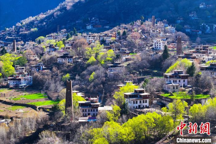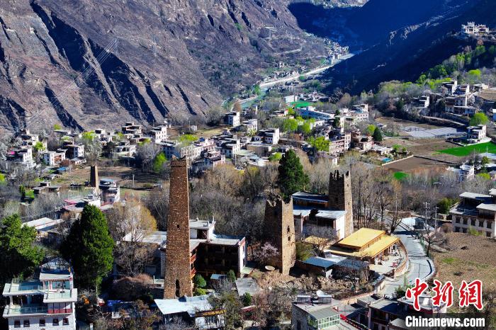 En avril, dans le bourg du mont Gyalmo Murdo, situé dans le comté de Rongchag sur le plateau nord-ouest du Sichuan, les innombrables poiriers sont en pleine floraison, au milieu de ces fleurs et des villages tibétains, des dizaines de blockhaus en pierre s'élèvent en dominant fièrement les poiriers, captivant le regard. Ces constructions anciennes, édifiées à partir de blocs de pierre, sont le fruit de l'ingéniosité des ancêtres de la population tibétaine Gyarong, aujourd'hui, elles sont devenues un emblème culturel et touristique du ? pays des milliers de blockhaus ?.