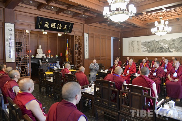 à ce moment-là, au fil de la conversation, la distance entre le Xizang et le Zhejiang semble s'effacer grace au bouddhisme, bien que les langues et écritures de ces deux traditions diffèrent, elles partagent la même origine et appartiennent au bouddhisme chinois, adhèrent aux principes de ? Ne commettre aucun mal, réaliser de bonnes actions ?, et poursuivent la noble tradition patriotique et religieuse de ? Magnifier la terre pure et apporter le bonheur aux êtres ?. Cette visite pédagogique sur le terrain a permis la création d'une plateforme d'échange et d'apprentissage mutuel entre le bouddhisme tibétain et le bouddhisme Han.