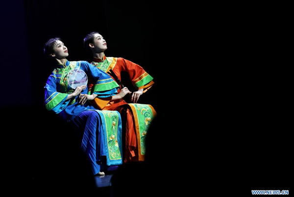 Des danseuses se produisent lors d'un spectacle de danse traditionnelle chinoise au Théatre de la Tour Eiffel à Paris, en France, le 24 juin 2025. (Xinhua/Gao Jing)