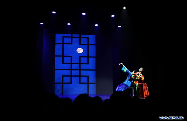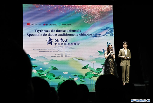 Présentation d'un spectacle de danse traditionnelle chinoise au Théatre de la Tour Eiffel, à Paris, en France, le 24 juin 2025. (Xinhua/Gao Jing)