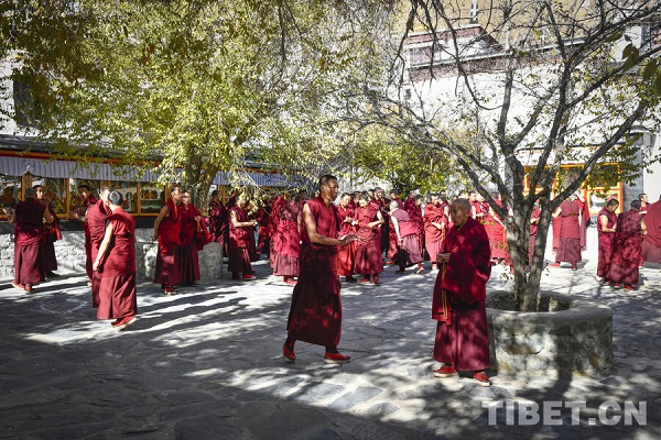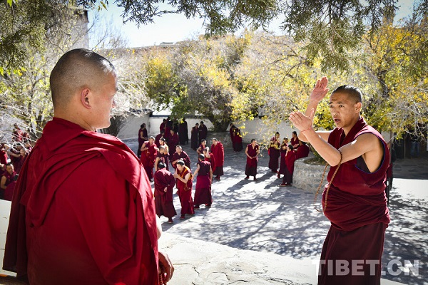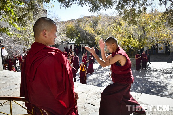 Le débat sur les soutras est une méthode essentielle par laquelle les moines du bouddhisme tibétain étudient le Dharma, à travers des sessions de questions-réponses et d'arguments contradictoires, ils explorent la profondeur des enseignements bouddhiques. Le 13 novembre, dans l'enceinte du monastère de Tashilhunpo, à Shigatse, dans la région autonome du Xizang, les moines vêtus de robes écarlates se sont réunis sur la cour dédiée au débat et ont engagé des joutes oratoires animées.