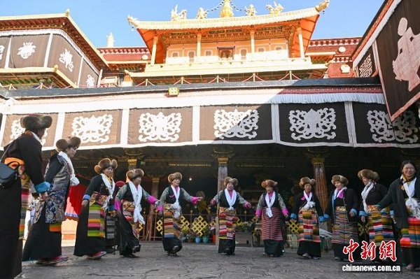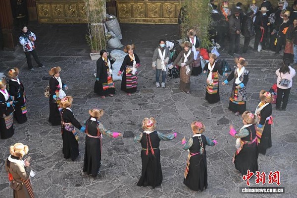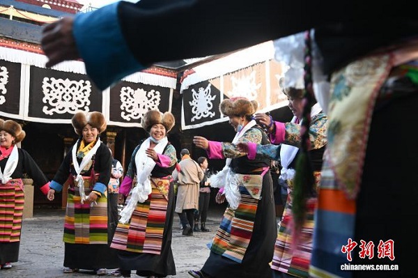à l'approche du festival de Pal Lhamo (également appelé ? Festival des Déesses ?) qui a lieu le 15e jour du dixième mois du calendrier tibétain, les femmes de Lhassa, au Xizang, ont exécuté le 28 novembre des danses traditionnelles devant le temple de Jokhang pour accueillir cette fête. Le ? Festival des Déesses ?, également connu comme la fête de la déesse Palden Lhamo, est appelé en tibétain ? Bailarizhui ?. Selon la légende, Pal Lhamo, fille de Palden Lhamo, l'une des principales divinités protectrices du bouddhisme tibétain, s'est liée par un v?u de fidélité éternelle à Tritsun Tsan malgré l'opposition de sa mère, furieuse, Palden Lhamo aurait banni Tritsun Tsan sur la rive sud de la rivière Lhassa, ne leur permettant de se revoir qu'une seule fois par an, le 15e jour du dixième mois du calendrier tibétain.