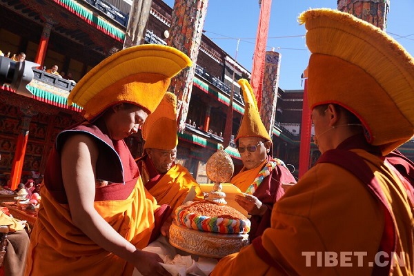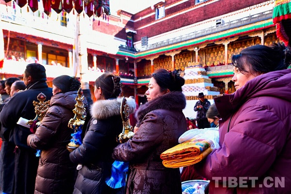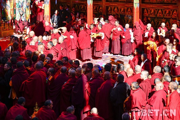 Le 9 décembre, la cérémonie commémorative marquant le 30? anniversaire de l'intronisation du panchen Erdeni Chos-kyi rGyal-po s'est tenue dans la cour Duojia du monastère de Tashilhunpo. Il y a trente ans, le gouvernement central, conformément aux institutions historiques du bouddhisme tibétain et aux rituels religieux, a finalement reconnu le jeune gar?on de six ans, Gyaltsen Norbu, originaire du comté de Lhari à Nagqu, comme l'enfant réincarné du dixième panchen Erdeni. Lors de la cérémonie, des représentants des moines du monastère de Tashilhunpo, des moines et moniales d'autres monastères de la ville de Shigatse, ainsi que des représentants de la famille du panchen Rinpoche et des représentants du public, lui ont respectueusement offert des mandalas rituels ou divers présents.