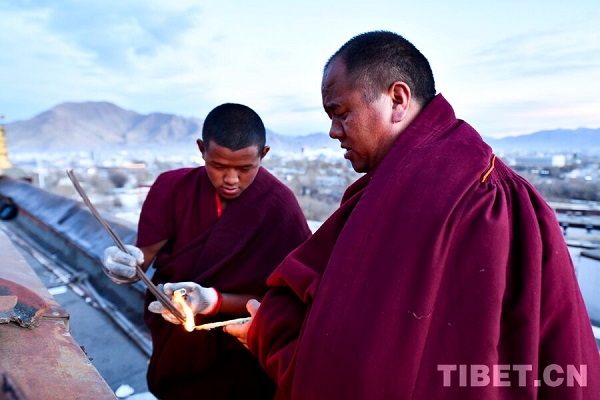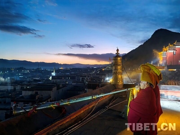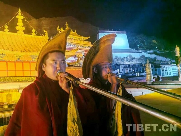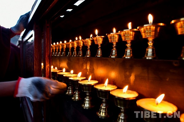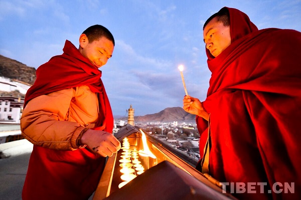 Le 14 décembre (soit 25? jour du dixième mois du calendrier tibétain) marque la fête religieuse traditionnelle annuelle de l'école Gelug du bouddhisme tibétain, appelée la ? Commémoration de l'Allumage des lampes ?. à cette occasion, moines et fidèles la?cs allument notamment des lampes à beurre (avec un combustible au beurre de yack) pour honorer le grand ma?tre Tsongkhapa, fondateur de l'école Gelug du bouddhisme tibétain. à la tombée de la nuit, les moines du monastère de Tashilhunpo, l'un des quatre grands monastères de l'école Gelug du bouddhisme tibétain au Xizang, allument des lampes à beurre lors d'une cérémonie religieuse traditionnelle en l'honneur de ma?tre Tsongkhapa.