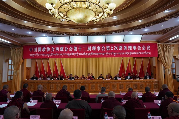 Le panchen Rinpoche présidant la deuxième réunion du Comité permanent du XII? conseil de la branche du Xizang de l'Association bouddhiste de Chine