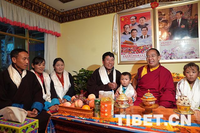 Chez les Dawa, le 11e Panchen Lama s’enquiert de la situation de la famille.