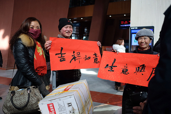 Aussi, différentes banderoles rouges sur lesquelles figure une bénédiction de la nouvelle année ont été réalisées pour souhaiter un bon voyage aux passagers.
