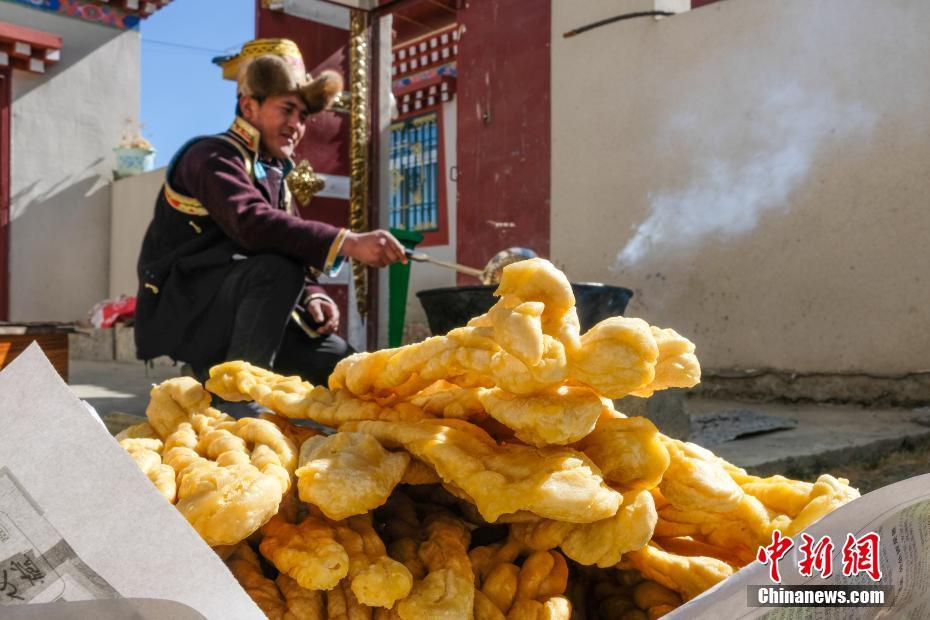 Le 24 janvier, un villageois du village de Songmucai (comté de Lang, ville de Nyingchi, région autonome du Tibet) est en train de faire frire du Kasai (un aliment frit à base de farine, l’un des indispensables du Nouvel An tibétain).