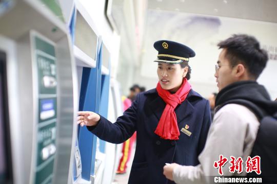 Renzhen Name aide les passagers à acheter des billets via un distributeur automatique.
