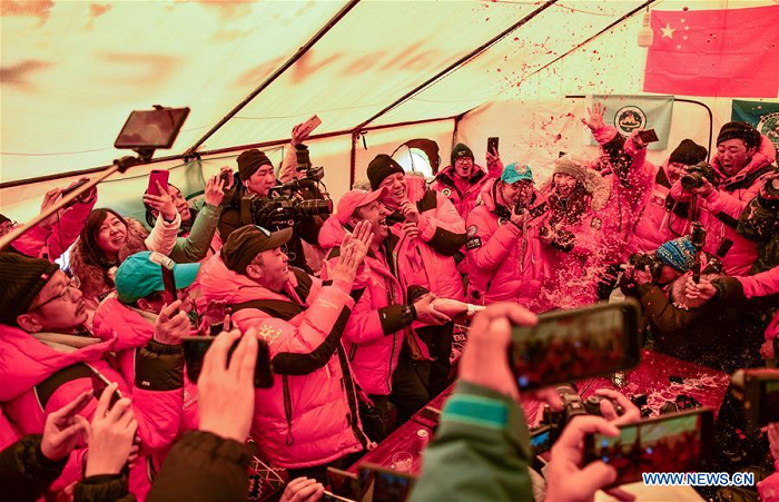 Les membres de l'équipe sont restés au sommet pendant deux heures et demie, un nouveau record pour les grimpeurs chinois.