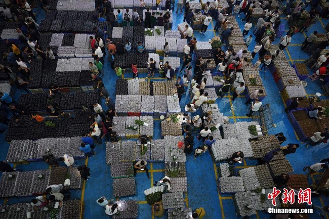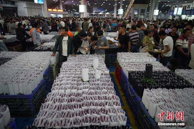 Le 23 ao?t, à l'approche de la fête de Qixi (Saint-Valentin chinoise), qui tombe cette année le 25 ao?t, le marché de Dounan est entré dans sa haute saison du commerce des fleurs de gros et de détail. Le marché de Dounan, situé à Kunming, chef-lieu de la province du Yunnan (sud-ouest), est le plus grand marché aux fleurs du pays ainsi que le plus grand d'Asie. (Photos : Liu Ranyang/Chinanews)