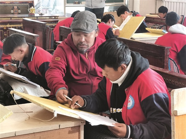 Dans l'atelier des thangkas, Palbar ??Tsering enseigne comment réaliser un brouillon initial et le dessin au trait d'une thangka. Dans la classe, les élèves sont assis les jambes croisées sur le sol, dessinant soigneusement leurs propres ?uvres. Il y a cinq ans, Palbar Tsering est venu au Deuxième Collège professionnel de Lhassa pour enseigner en tant que professeur de thangka. Au cours des cinq dernières années, environ 150 stagiaires de la peinture de thangka ont été formés dans les cours de thangkas du Deuxième Collège professionnel de Lhassa. Palbar Tsering a expliqué aux journalistes que la plupart des étudiants dipl?més de l'atelier des thangkas ont été embauchés avec succès, et qu'une petite partie d'entre eux a choisi ce programme d'études professionnelles. L'enseignement professionnel ne favorise pas seulement l'emploi, mais joue aussi un r?le positif dans la transmission et le développement de la culture des thangkas. ? Les activités de la Semaine de la formation professionnelle ont permis à nos étudiants de mieux comprendre le type de carrière qu'ils aimeraient poursuivre à l'avenir et de conna?tre l'importance des compétences professionnelles dès le début des cours ?, dit Palbar Tsering.