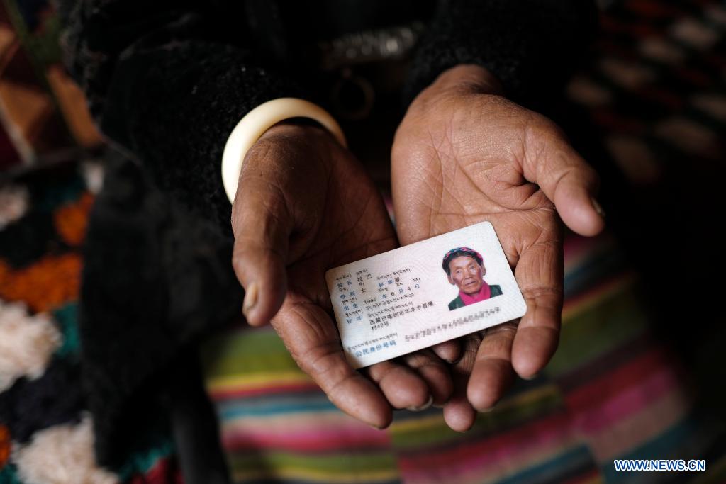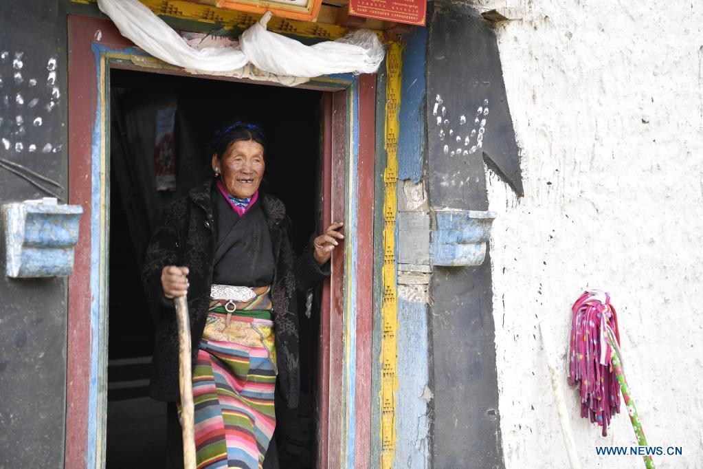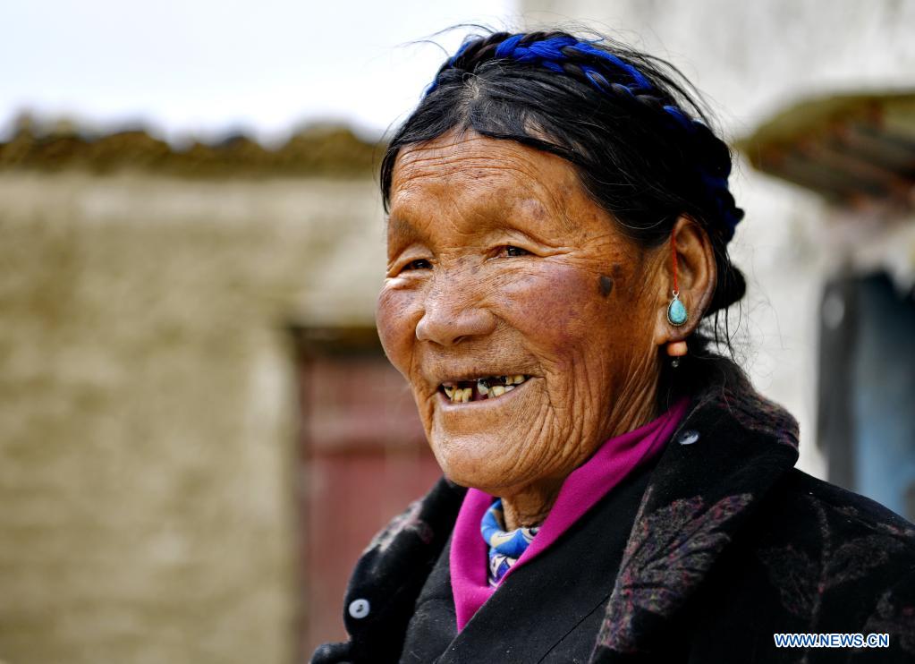 Lhapa, née en 1945, est une habitante du village de Puga, situé dans la ville de Shigatsé, dans la région autonome du Tibet (sud-ouest de la Chine). Quand elle était enfant, sa mère est devenue aveugle à cause du surmenage et a perdu la capacité de travailler. Le propriétaire de serfs l'a alors chassée de son manoir et la mère de Lhapa a d? mendier partout avec sa s?ur pour gagner sa vie. En 1959, lors de la réforme démocratique au Tibet, la famille de Lhapa fut finalement réunie et se vit allouer 24 mu (environ 1,6 hectare) de terres, six moutons et deux vaches. Ils construisirent également une maison qui leur appartenait. De nos jours, Lhapa vit dans une maison à deux étages de style tibétain propre et confortable, profitant d'une vie heureuse pour ses dernières années.